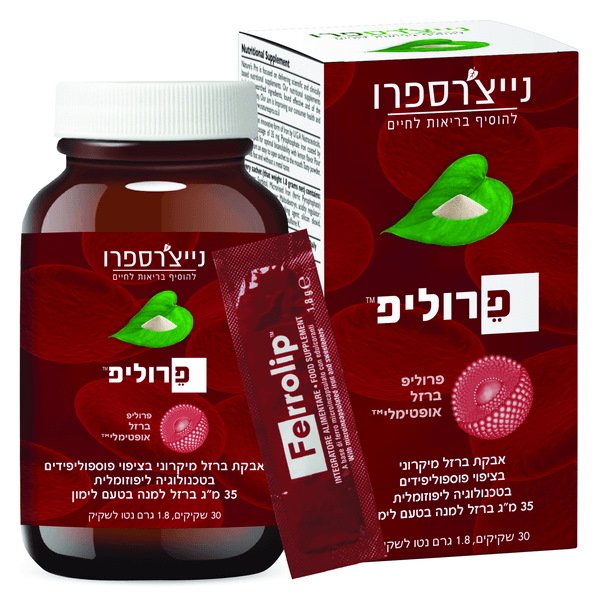 ברזל (Ferric Pyrophosphate), תכולה בשקיק: 35 מ"ג, שהם 233% מהקצובה היומית המומלצת לנשים בגילאי 25-50 שנה, 350% מהקצובה היומית המומלצת לגברים בגילאי 25-50 שנה.